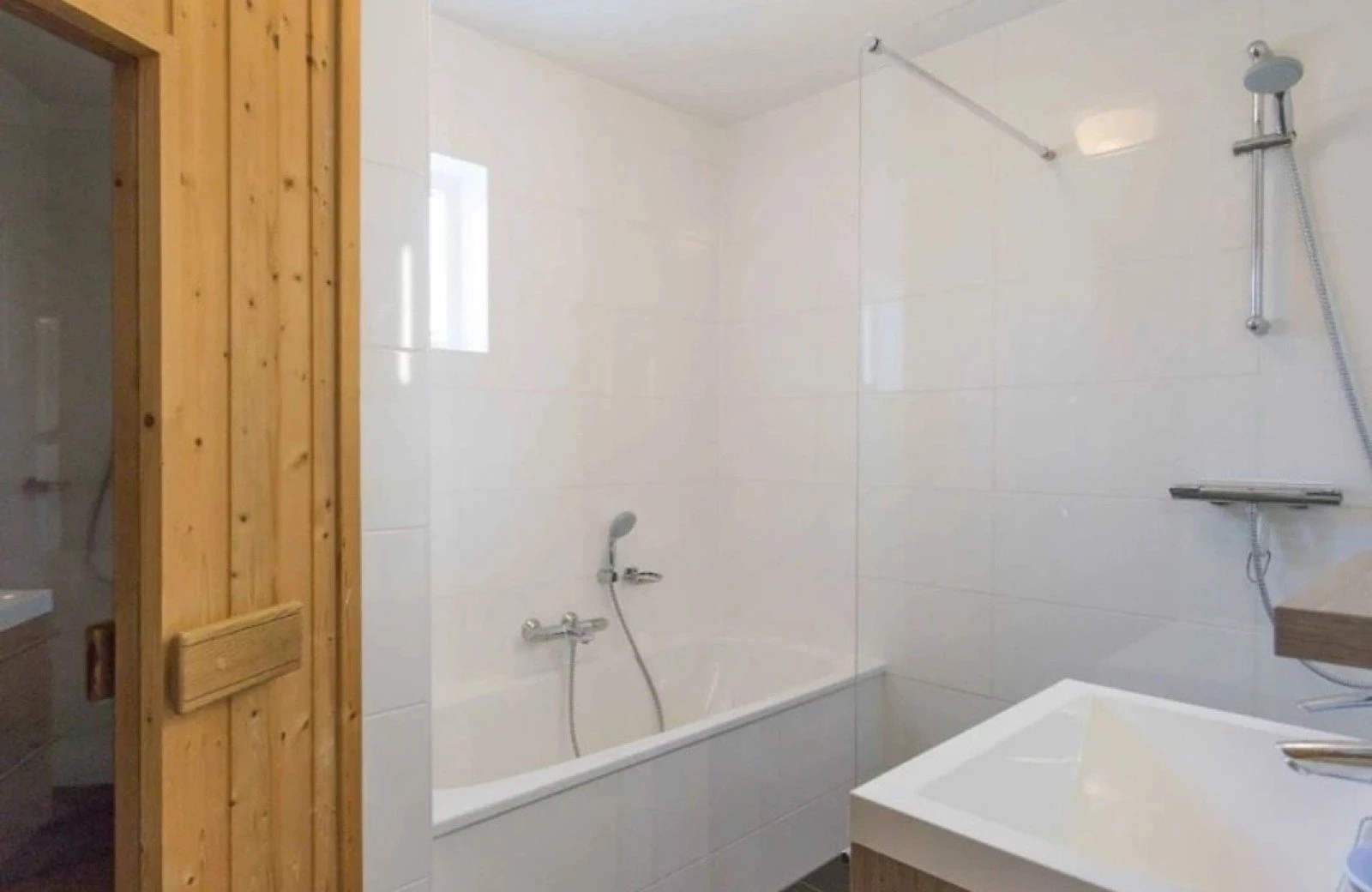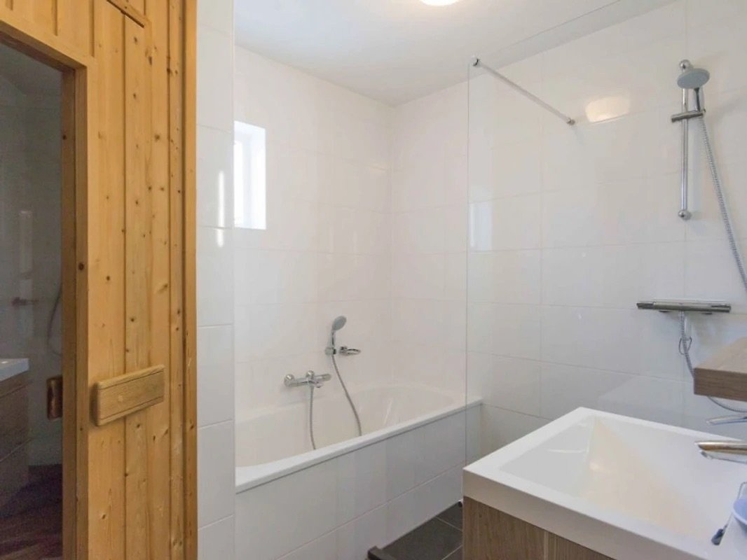 - Badkamer met badkuip, douche en sauna