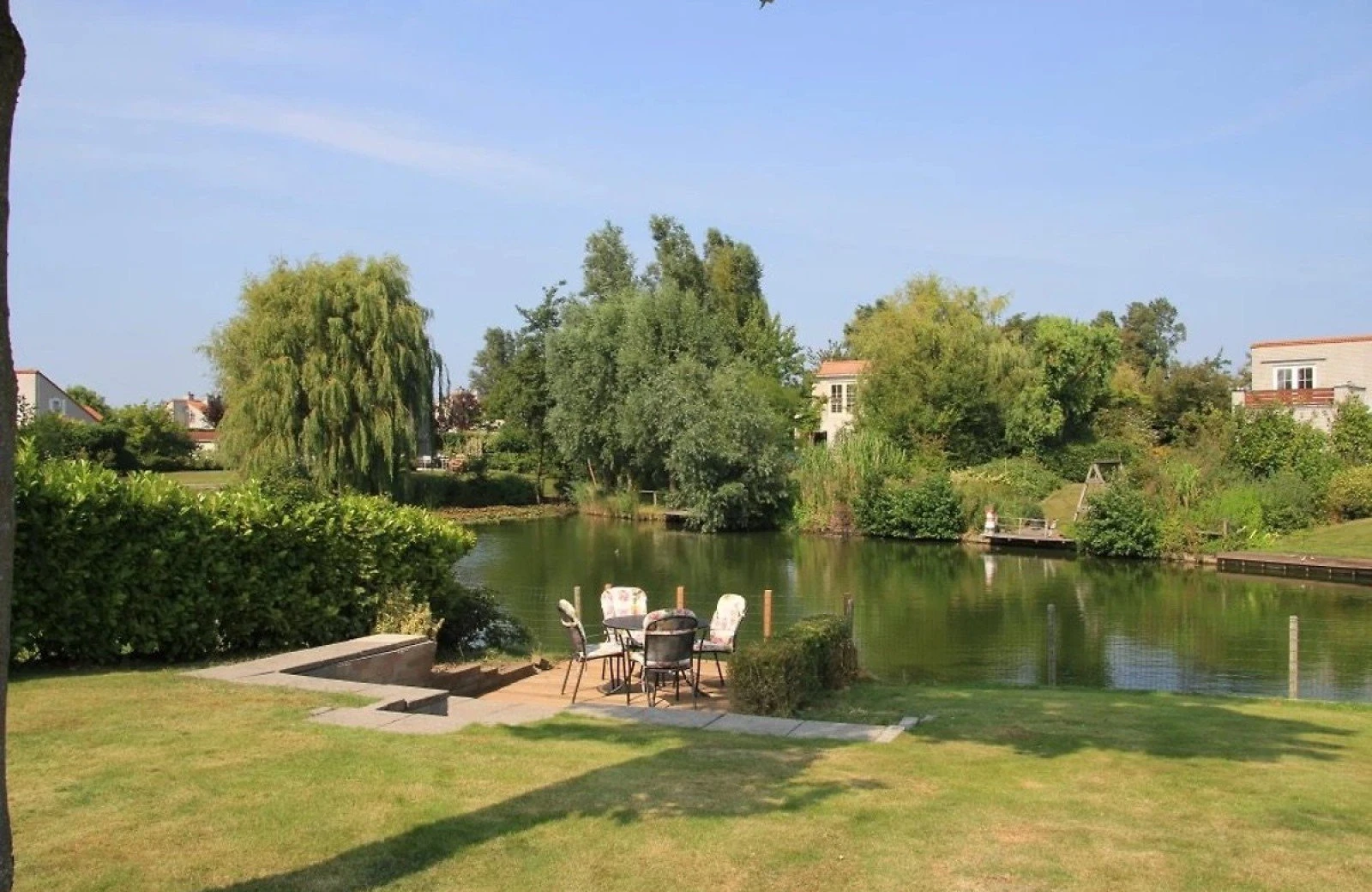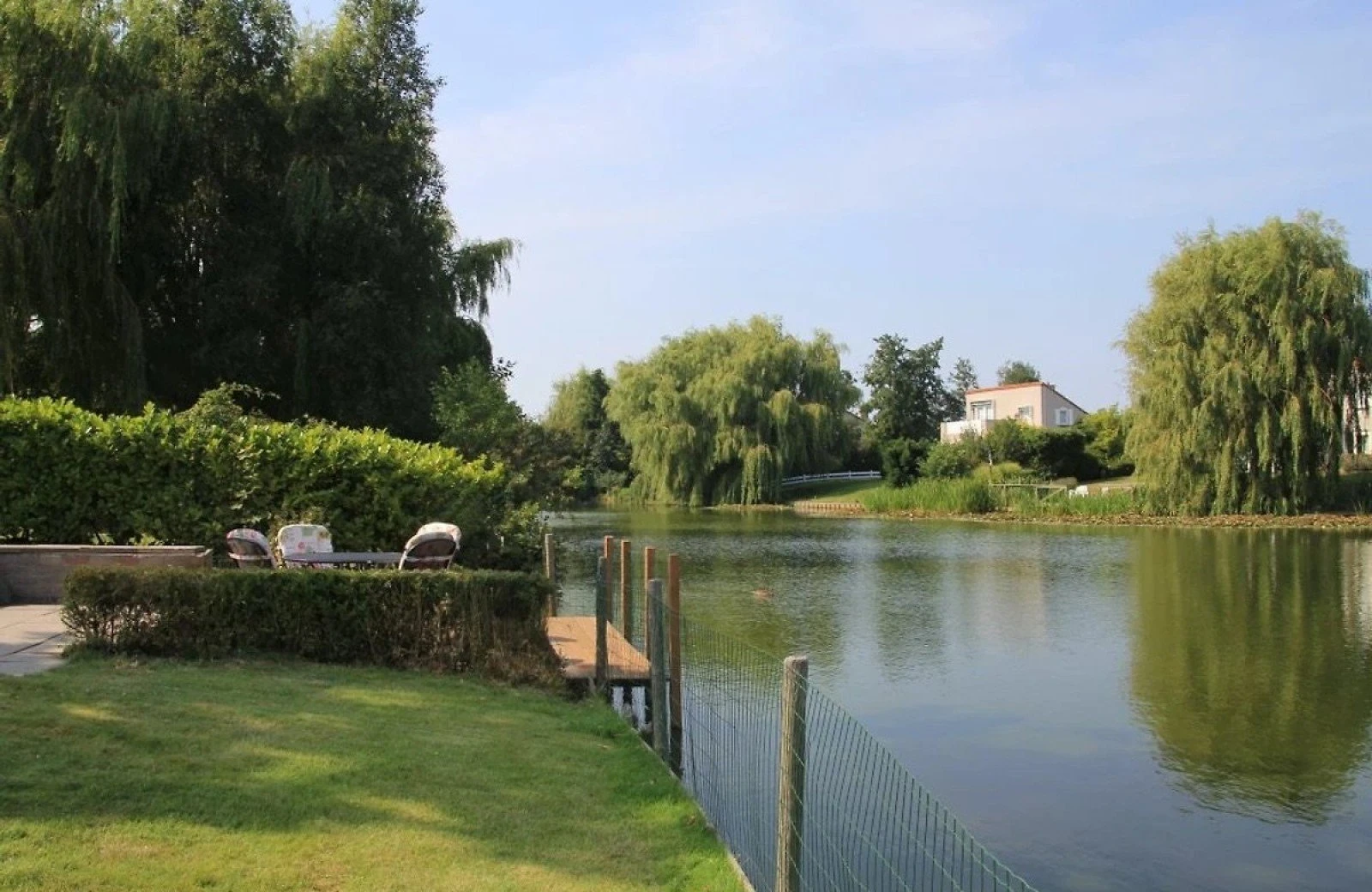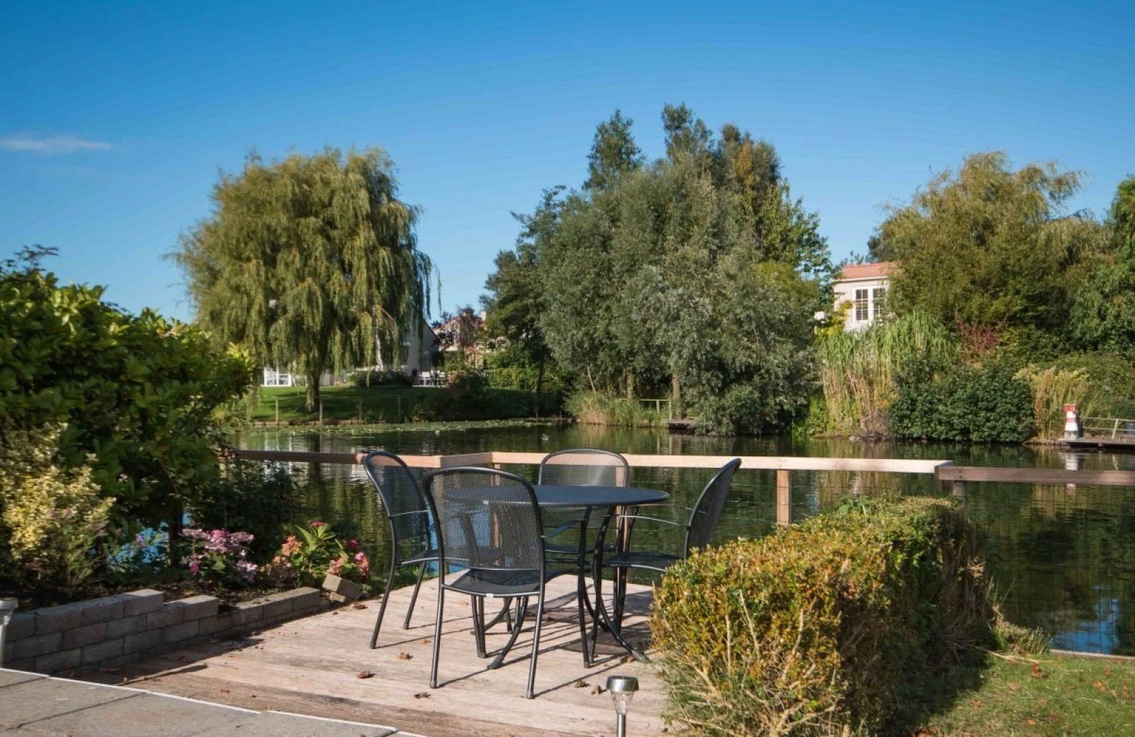 - Ruime, volledig omheinde tuin aan het water